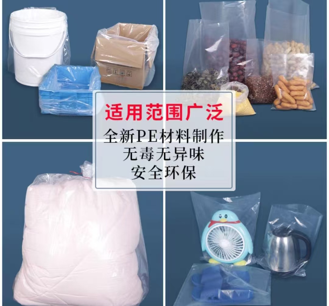 平口袋是开口为平口方式的塑料袋,它的优势在于好开口,开口面积大,袋子规格也可以做到很大,能盛装更多的物品,缺点就是需要密封保存的时候要么需要自己手工给袋口扎住,要么需要封口机把开口烫合住才行。常用作纸箱内衬,塑料外包装等。